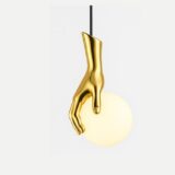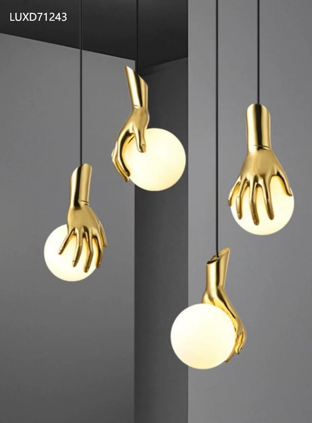 The LUXD71243 Art Hand Pendant Light brings a bold fusion of design and lighting. Crafted to resemble golden hands gracefully holding luminous spheres, this pendant is more than illumination—it’s a sculpture for your ceiling.