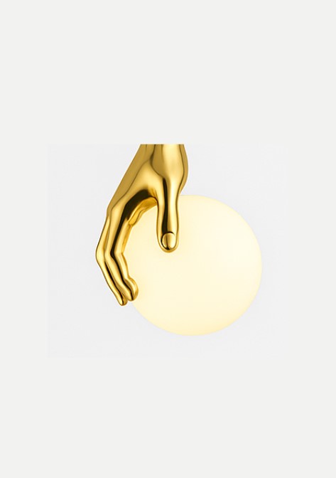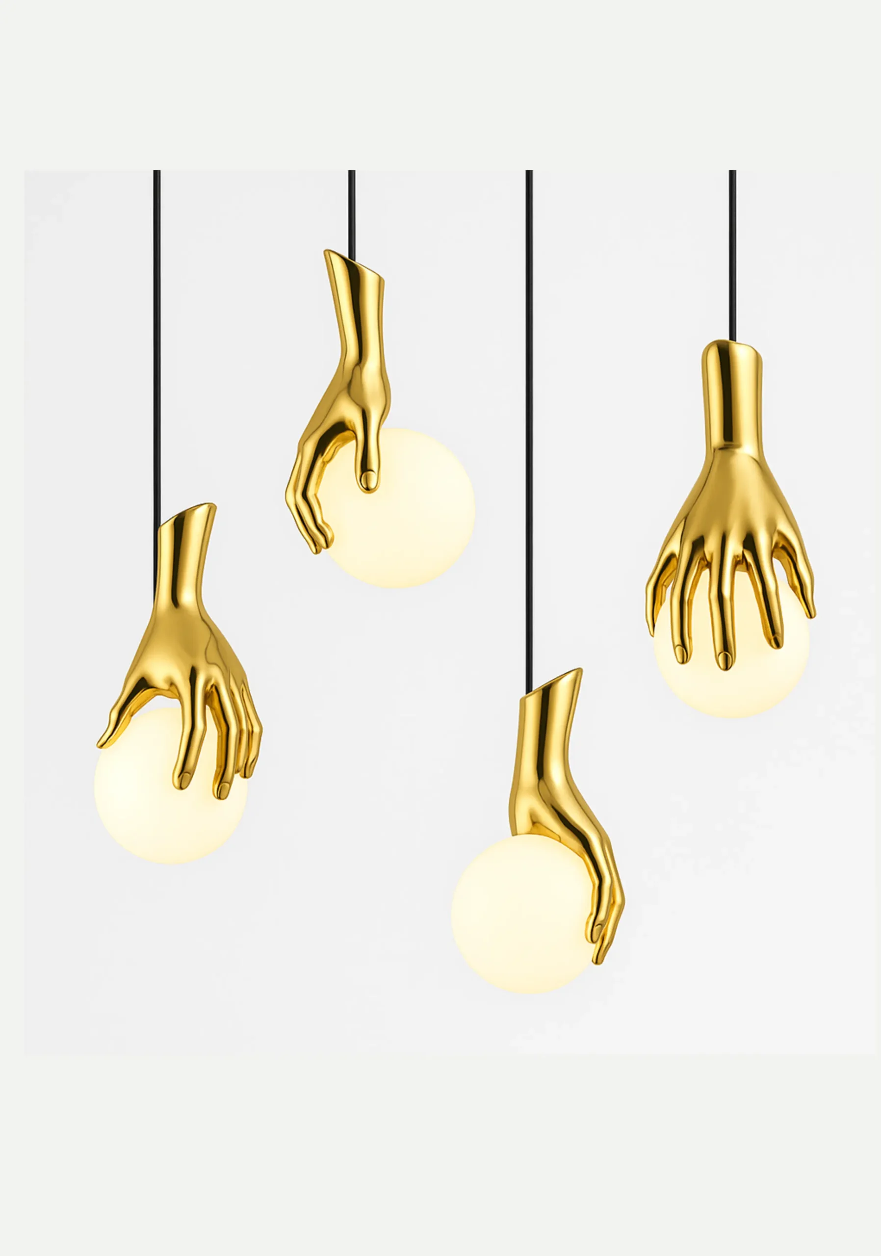 Its modern aesthetic fits perfectly into art-driven spaces, boutique interiors, galleries, restaurants, or luxury homes looking for something beyond the ordinary. The warm glow from the opal glass orbs creates an inviting ambiance while the gold hand fixtures bring a high-end finish. Perfect for those who believe lighting should be expressive and iconic.