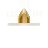 Enhance your interior with timeless sophistication using the LuxSun Aurora Gold Accent Modern Wall Light – 7076-2. This eye-catching fixture features a series of sleek vertical rods with a luxurious golden finish, topped with a soft white rectangular shade that gently diffuses light for a cozy ambiance.