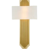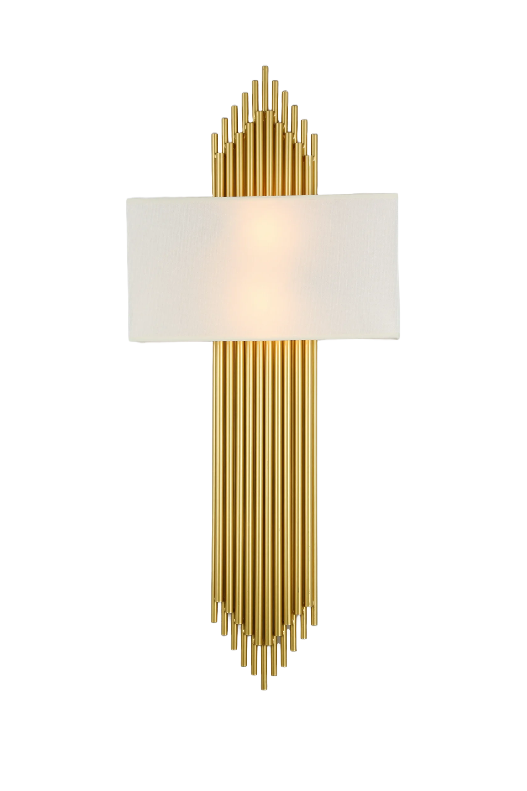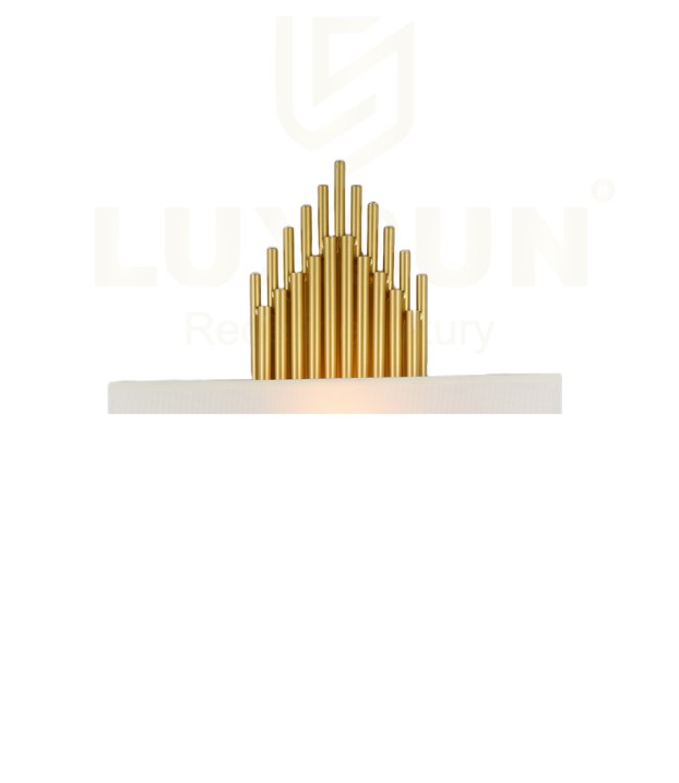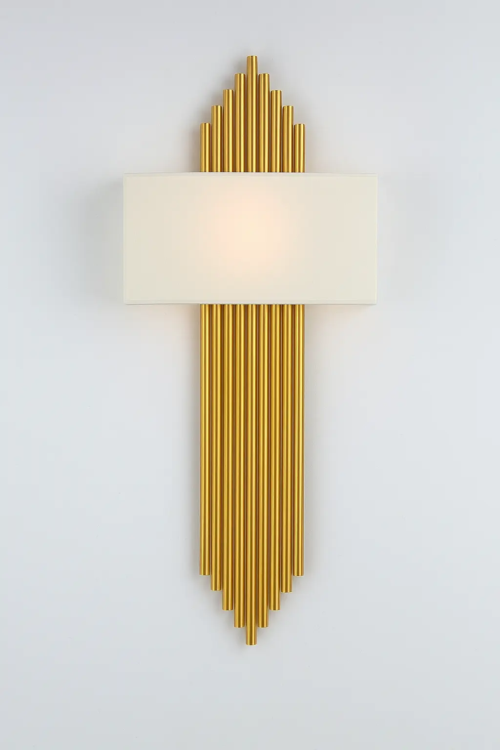 Add a touch of luxury and elegance to your interiors with the LuxSun Aurora Gold Accent Wall Light. Its striking gold vertical rods and soft fabric shade make it the perfect fusion of modern sophistication and warm ambient lighting.