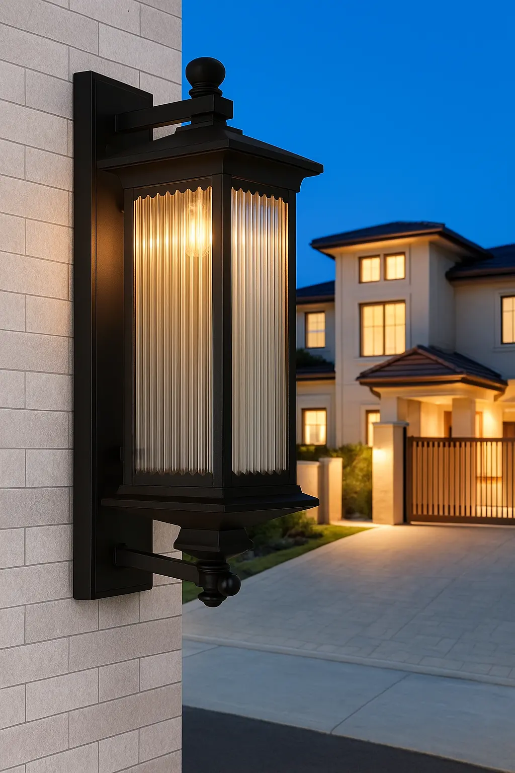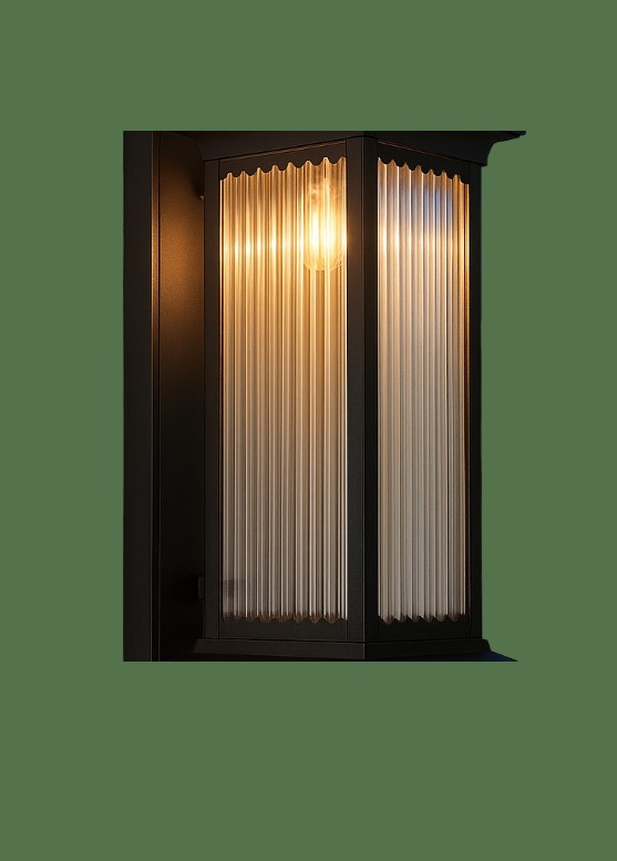 Bring sophistication and structure to your exterior lighting with the 934F Contemporary Gate Light. This vertical wall-mount fixture features elegant ribbed glass panels that softly disperse light, adding warmth and ambiance to your home’s entrance.