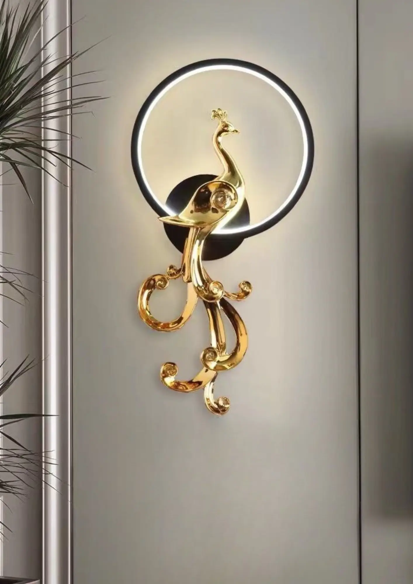 Bring royal charm to your interiors with this elegant Golden Peacock LED Wall Light. A perfect blend of art and illumination for hallways, bedrooms, or entrance décor.