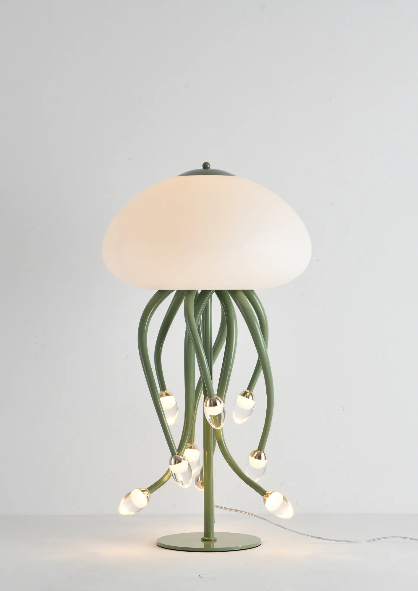 Make a bold décor statement with the JellyGlow Artistic Tentacle Table Lamp, a unique piece that channels the elegance of marine life into a work of functional art. Featuring a frosted dome that gently diffuses light and multiple curved green arms ending in glowing capsules, this lamp creates a surreal underwater-like ambiance in any room.