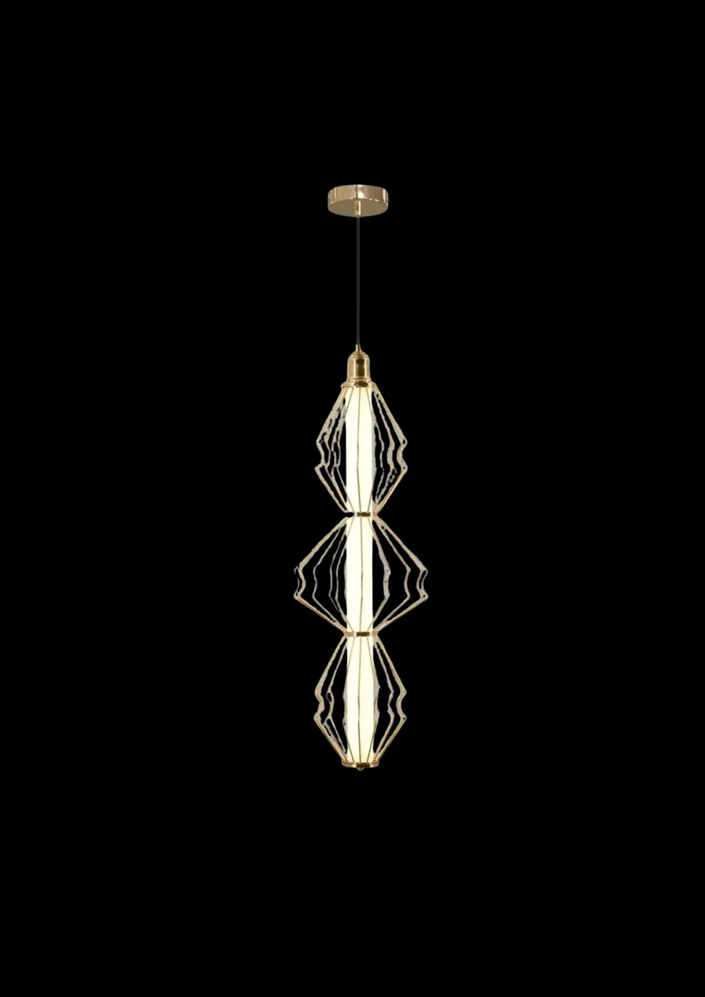 Introduce a bold statement of modern luxury with the LUXSUN LuxeWave Gold Pendant Light. Crafted with a unique geometric wave pattern and a stunning gold finish, this pendant is designed to be the centerpiece of any interior. The warm white light emanates through its sculptural frame, creating a cozy yet high-end atmosphere.