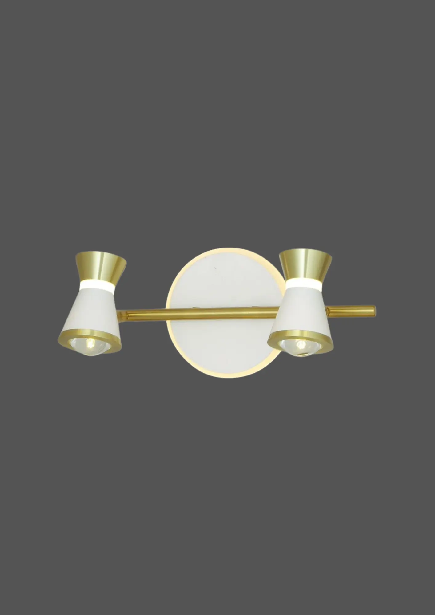 Designed for modern aesthetics, the LuxSun TwinGlow Picture Light brings together form and function in a striking blend of frosted white and brushed gold. With two elegant cone-shaped heads, this fixture casts warm, focused lighting perfect for highlighting portraits, artwork, mirrors, or design elements on your wall.