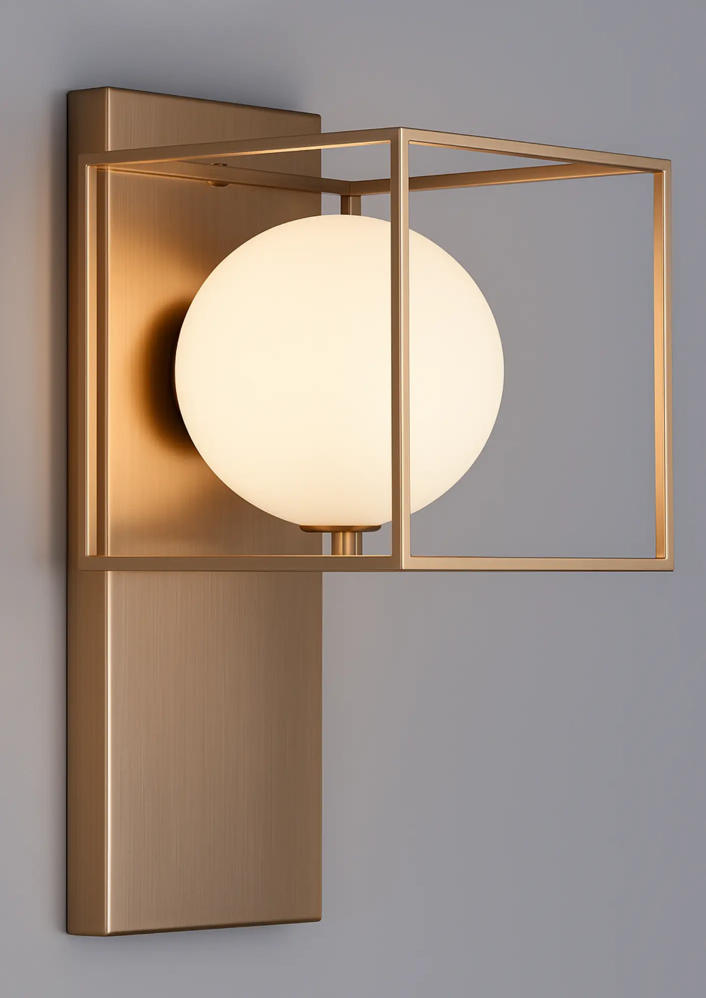 Bring a touch of luxury and sophistication to your home with theModern Gold Frame Wall Light with Frosted Globe. This wall-mounted fixture features a minimalist golden square frame enclosing a frosted glass globe, creating a perfect harmony of design and functionality. The brushed gold finish adds a premium aesthetic, while the globe diffuser ensures a warm, ambient glow that complements any contemporary space.