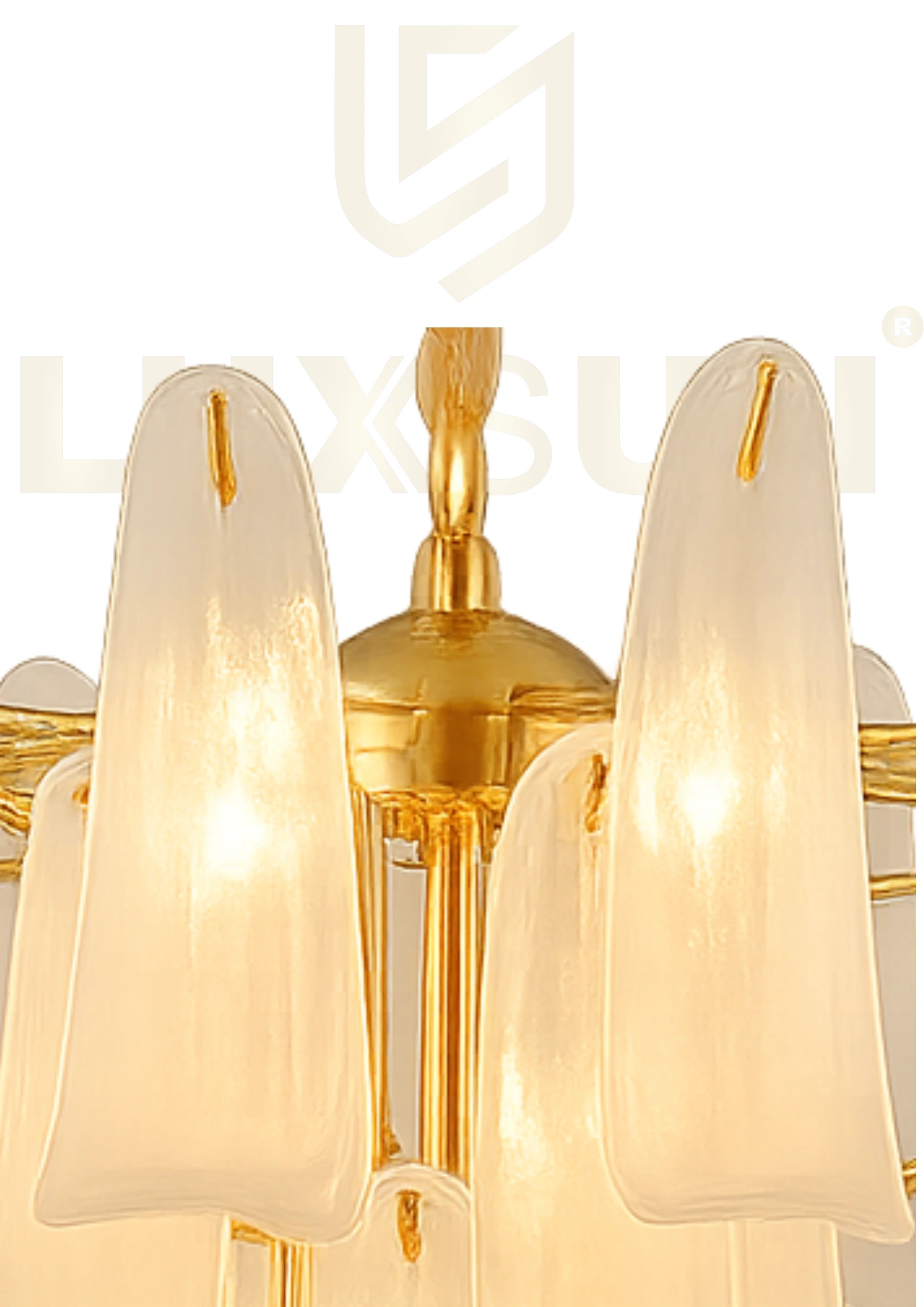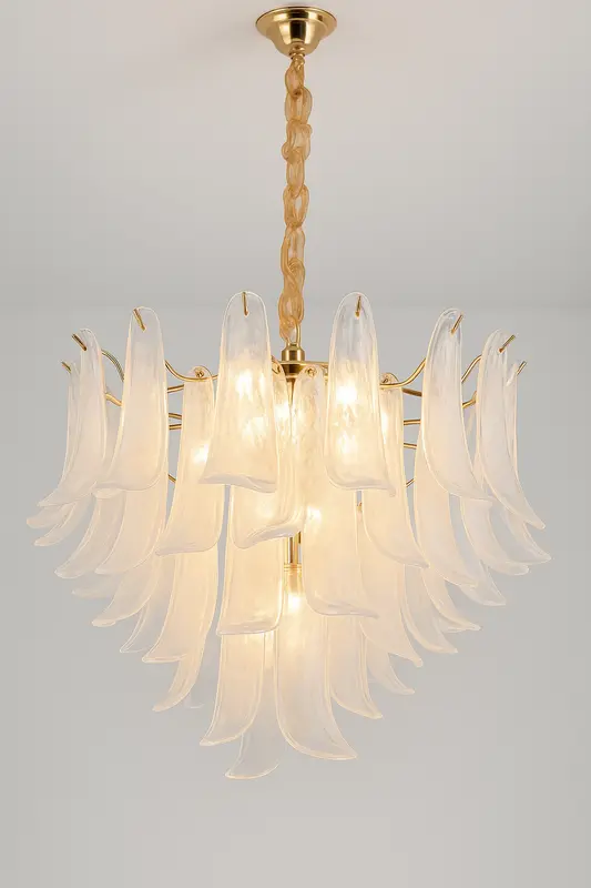 Bring timeless elegance into your home with this Murano-style glass leaf chandelier. Expertly crafted with high-quality materials, this chandelier showcases a blend of clear and white glass leaves, offering a graceful and airy design. Perfect for luxury living spaces, dining areas, or lobbies.