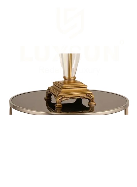 This lamp seamlessly blends opulence and utility, ideal as a centerpiece for your side table, bedroom, or formal living space. With a commanding presence and attention to detail, it brings elegance and sophistication to any setting.