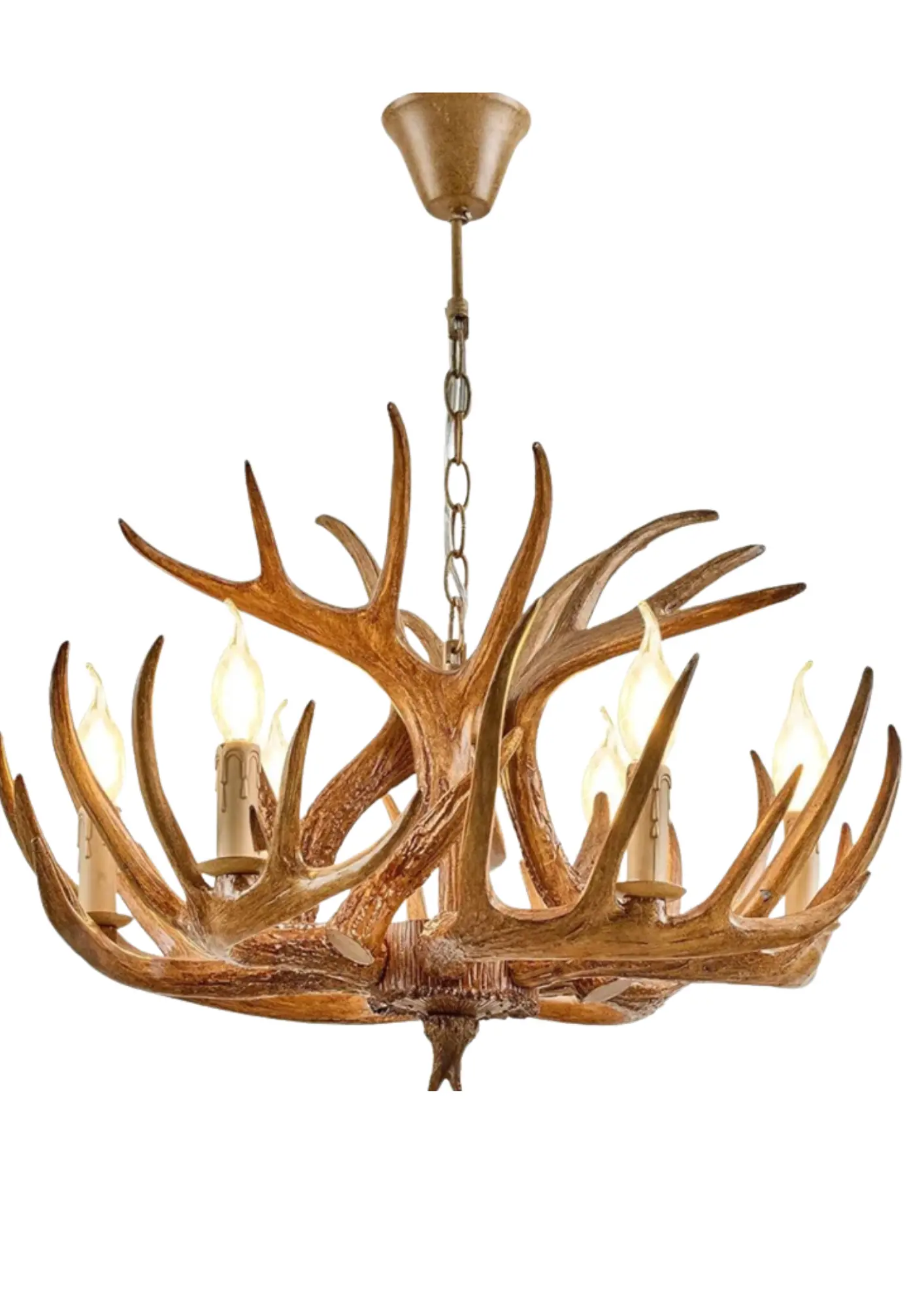 Each branch holds a candle-style bulb with flame tips, recreating a cozy, fire-lit ambiance. Whether you’re upgrading a countryside home or designing a nature-themed restaurant, this chandelier makes a bold statement of character and warmth.