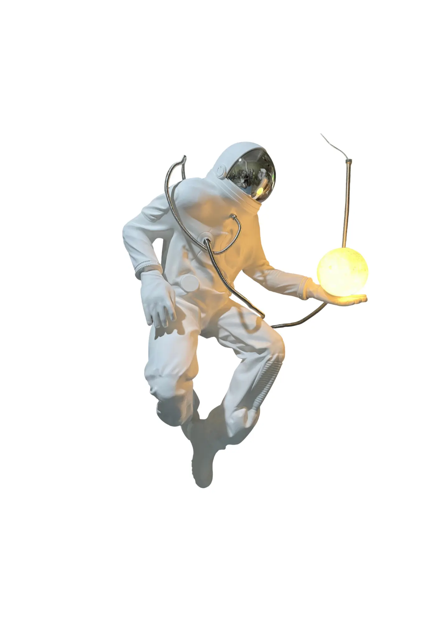 The White Astronaut Holding Glowing Sphere Statue captures the wonder of space exploration in a contemporary art form. Its striking all-white suit contrasts beautifully with the reflective helmet and warm glowing sphere, symbolizing curiosity, discovery, and innovation.